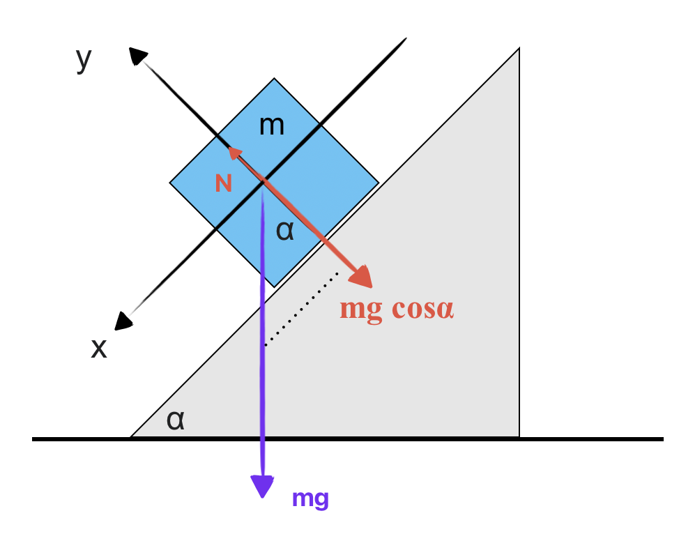 \[\sum F_y = N - mg\cos\theta = 0\]לכן הכוח הנורמלי: